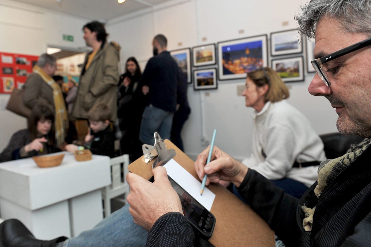 The exhibition also shares space with a photographic series of St Neots by Maciek Platek, offering a complementary perspective on the town through lens-based work. Displayed alongside the postcards, the photographs add another layer to the visual narrative, capturing moments, textures, and atmospheres that echo and expand upon the themes explored by contributors.