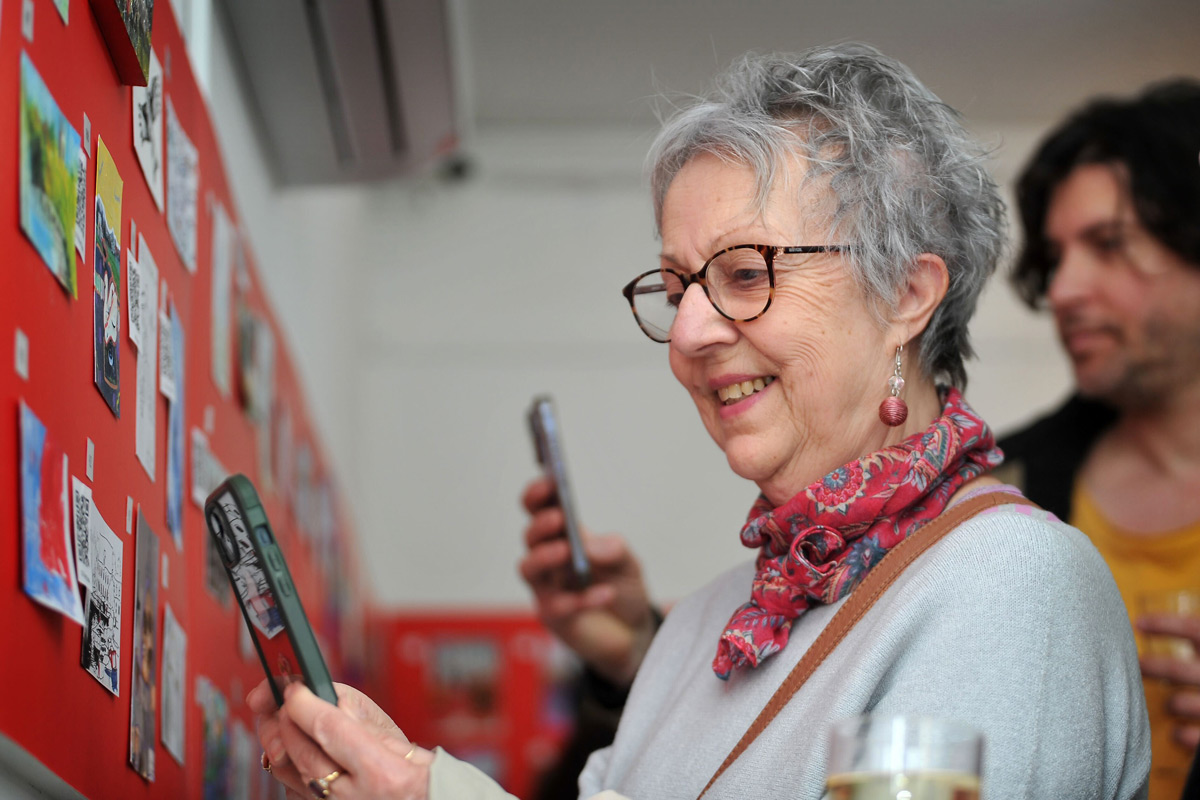 A particularly special element of the exhibition is the inclusion of work by young people, with contributions from Crosshall Infant School’s after-school art club, as well as Stacie Swift’s Eynesbury school creative club. Their postcards sit alongside those of established and emerging artists, reinforcing the exhibition’s inclusive, community-led ethos.
